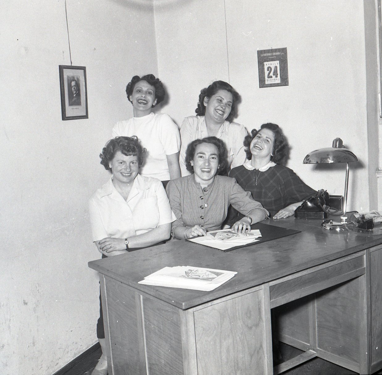 Nella foto di gruppo si nota la presenza di una foto di Attilio Hortis appesa sul muro