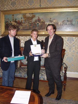 L'assessore comunale Roberto Menia ed il Presidente dell'Aiat di Trieste Franco bandelli con la neo campionessa mondiale Tanja Romano nel salotto azzurro del Municipio