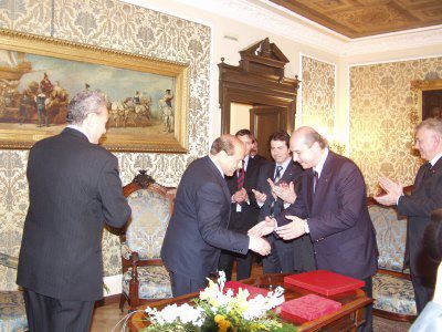 ll Presidente del Consiglio Silvio Berlusconi accompagnato dall'onorevole Roberto Antonione incontra il sindaco Roberto Dipiazza, il vicesindaco Renzo Codarin, gli assessori Roberto Menia, Maurizio Bucci, Giorgio Rossi, Fulvio Sluga