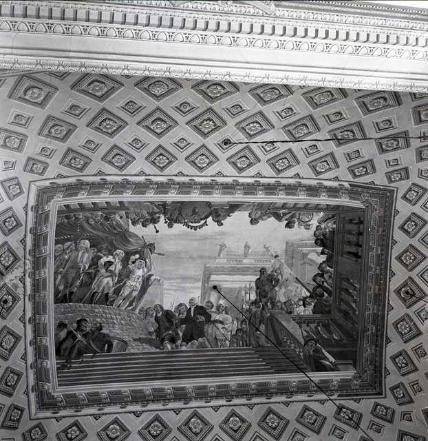 La Sala Maggiore, adornata da venti colonne con capitelli corinzi, riporta al centro del soffitto un affresco allegorico, opera di Giuseppe Bernardino Bison, che rappresenta la proclamazione del Porto Franco di Trieste da parte dell’Imperatore Carlo VI d’Asburgo.