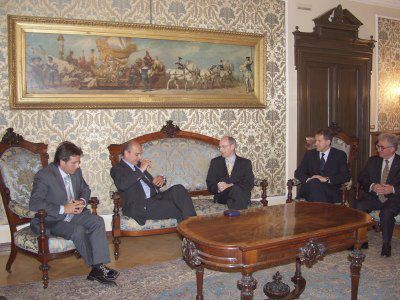 Il sindaco Roberto Dipiazza, l'assessore comunale Maurizio Bucci, il Console generale del Regno Unito Richard Northern, Roberto Galli addetto commerciale del Consolato ed il presidente del Consiglio Comunale Bruno Sulli, nel salotto azzurro del Municipio.