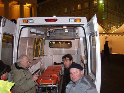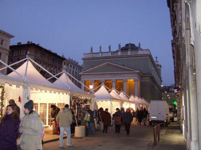 Mercatino di Natale denominato : Un'ambulanza per Natale : solidarieta' europea dei mercatini di Natale , inaugurato in piazza Sant'Antonio Nuovo : Trieste : 2002