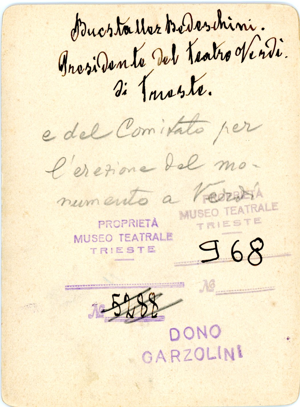 Deputato al Consiglio Imperiale d'Austria, direttore dell'Istituto dei Poveri di Trieste, presidente del Teatro Verdi e del comitato per l'erezione del Monumento a Giuseppe Verdi; a lui è intitolato il bosco attraversato dalla strada Napoleonica. La chiesa di S. Floriano a Banne è l'unico elemento sopravissuto della tenuta di famiglia, sulla quale è stata eretta la caserma e i magazzini intorno agli anni '20