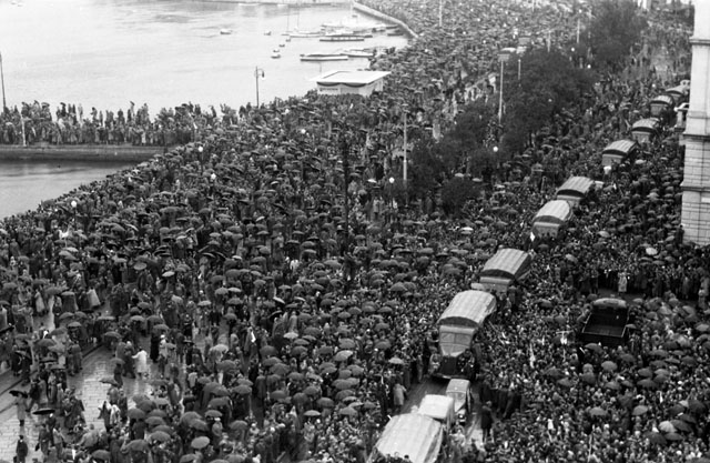 Sotto una pioggia battente, la folla stipata sulle Rive e in piazza Unità d'Italia accoglie con entusiasmo i militari italiani prendendo d'assalto i camion dell'esercito. I cacciatorpedinieri Grecale e Artigliere e l'incrociatore Duca degli Abruzzi attraccano con difficoltà' per la quantità di gente presente sul molo Audace. Il generale De Renzi e il sindaco Bartoli rivolgono il loro messaggio alla cittadinanza riunita in piazza Unità d'Italia.
