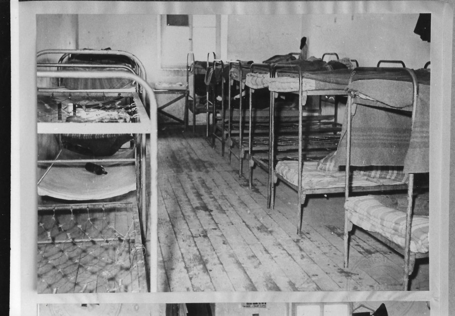 Riproduzione fotografica del dormitorio all'interno della Risiera di San Sabba