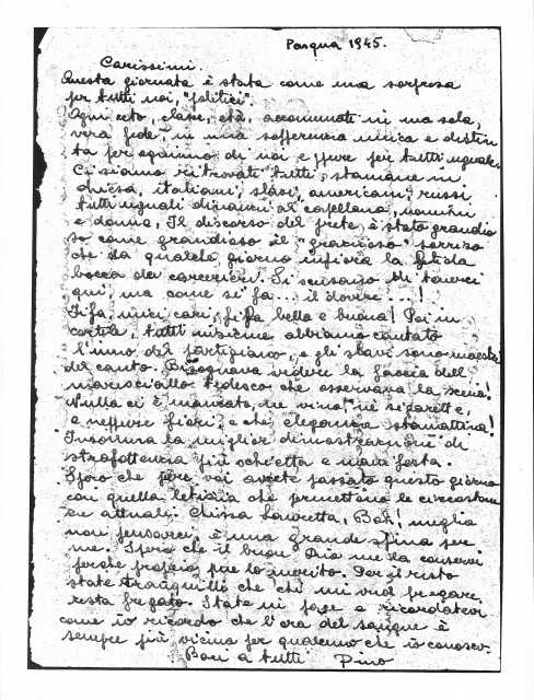 Pino Robusti, lettera ai famigliari, Pasqua 1945