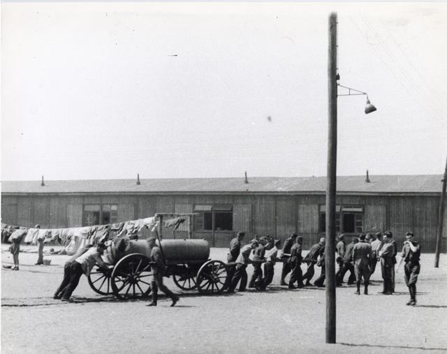 Sandbostel, il carro M si avvia verso l'uscita del lager