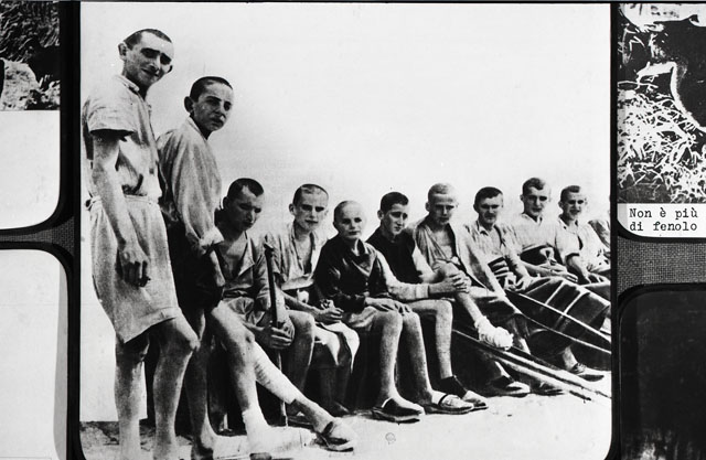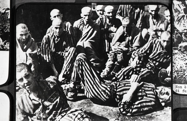 Bambini, carro pieno di cadaveri, feriti vicino ad un carro armato, baracche con i prigionieri denutriti, apertura dei lager