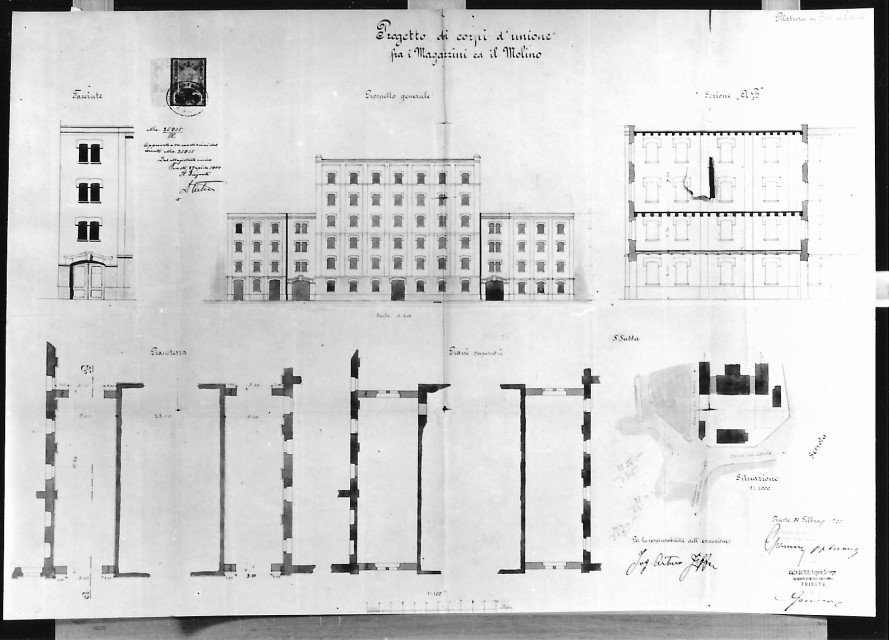 Risiera di San Sabba, progetto dei corpi d'unione fra i magazzini e il mulino
