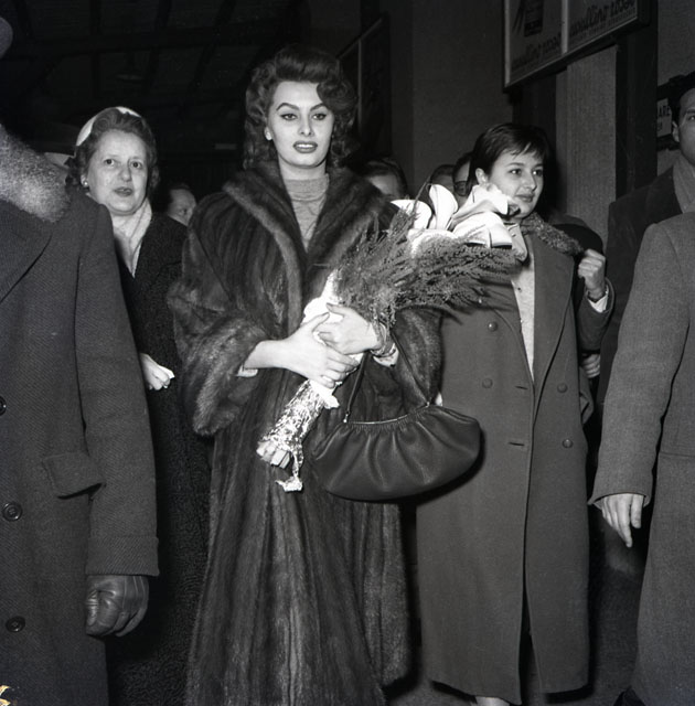 Giunta a Trieste con la sorella per partecipare a un ricevimento benefico dato in suo onore dalla Croce Rossa Italiana, Sophia Loren effettua un tour della città accompagnata anche dallo scultore Marcello Mascherini.