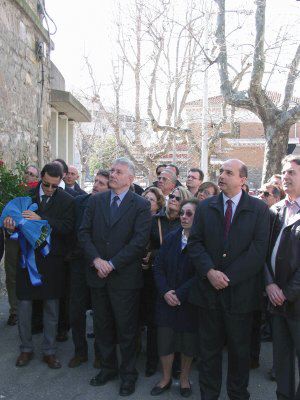 Il sindaco Roberto Dipiazza, la mamma di Stefano, Giorgio Rossi assessore e Guido Galetto assessore provinciale assistono allo scoprimento della targa