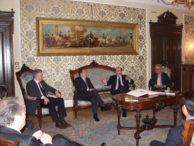 Il sindaco Roberto Dipiazza sindaco e l'assessore comunale Giorgio Rossi ed il presidente del Consiglio comunale Bruno Sulli incontrano l'ambasciatore cinese Chen Wen Dong, nel salotto azzurro del Municipio.