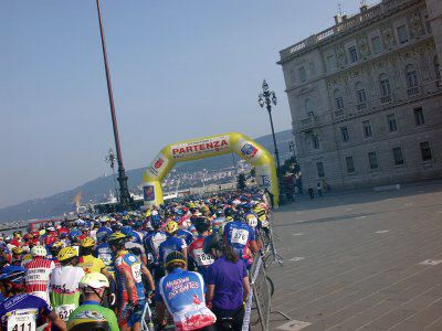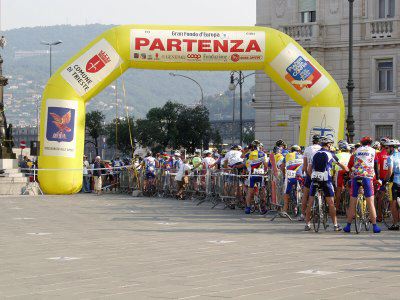 Partecipanti alla partenza della corsa ciclistica Gran fondo d'Europa.