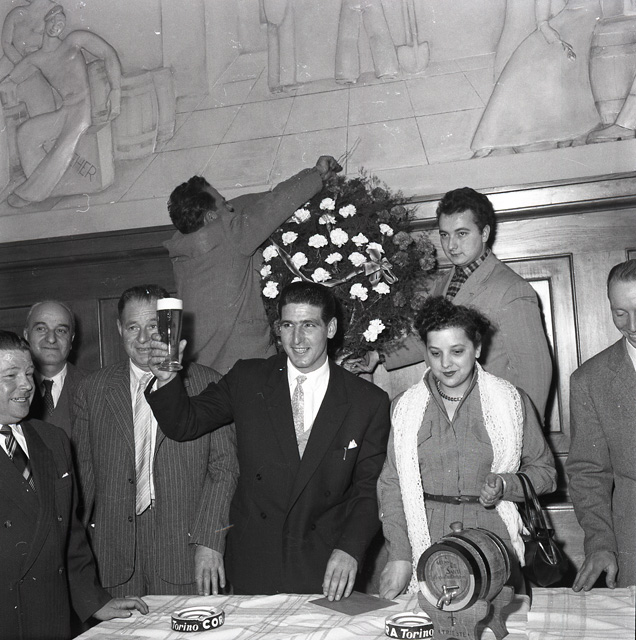 I titolari di due noti ritrovi sportivi, Cattaruzza e Preti, hanno offerto a Guido De Santi una medaglia d'oro. Alla cerimonia ha preso parte Giordano Cottur, il presidente dell'associazione ciclistica Bartali, alla quale Guido è affiliato dal giorno prima. E' stato offerto poi un barilotto di birra Dreher in scala ridotta, una pergamena e un canestro di fiori fasciati da un nastro tricolore. Testo tratto dall'Archivio Borsatti, Lettera alla redazione Stadio, 19 dicembre 1953