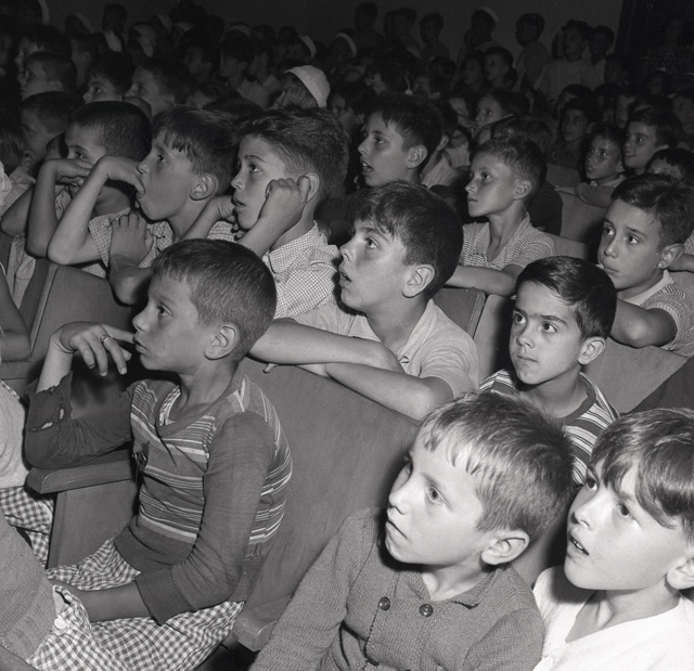 Colonia montana G. De Col della Lega nazionale a Strigno <TN>. Esterni ed interni della colonia. Cucina gestita dalle suore. Gruppi di bambini impegnati in varie attivita quotidiane e ginnico-sportive. Foto di gruppo. Folla di bambini attorno ad un furgoncino con la scritta sul fianco: "Radio Trieste"