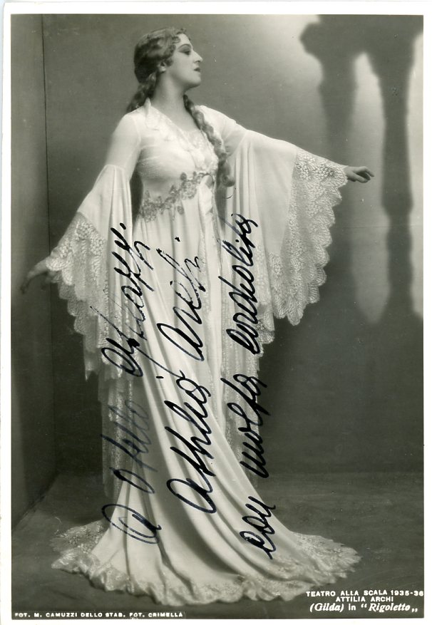 In costume (Gilda) in "Rigoletto"