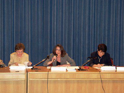 Claudia D'Ambrosio, accanto a lei Clara Collarile Rappresentante del Dipartimento della Presidenza del Consiglio dei Ministri per le Pari Opportunità e Giovanna Del Giudice primario del Dipartimento di Salute Mentale