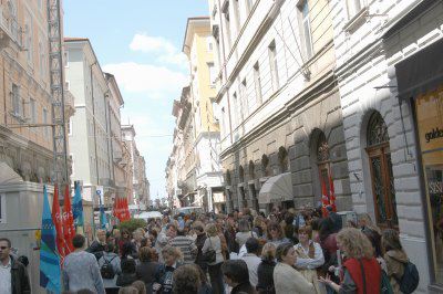 L'assessore Claudia D'Ambrosio con la stampa ed i manifestanti in strada