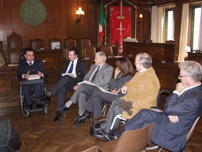 L'assessore comunale Claudia D'Ambrosio, il presidente del Consiglio comunale Bruno Sulli ed il Vicepresidente del Consiglio regionale del FVG Giulio Staffieri, durante l'incontro con il presidente Giuseppe Trieste ed altri rappresentanti del Fondo Italiano Abbattimento Barriere Architettoniche ,