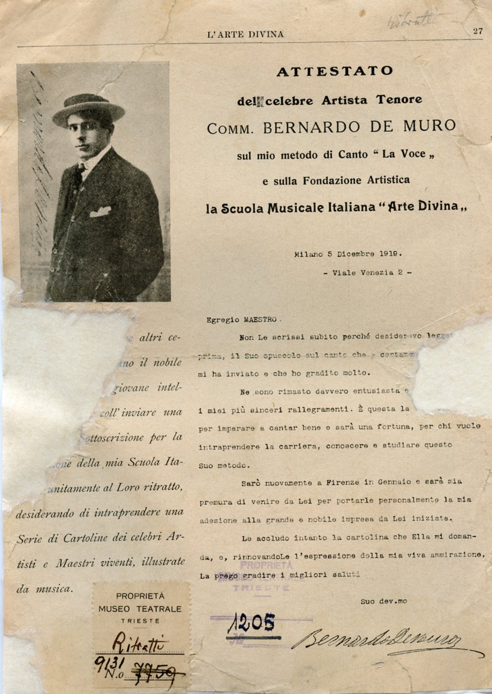 A Trieste ha cantato al Teatro Comunale nel 1913 in "Carmen"