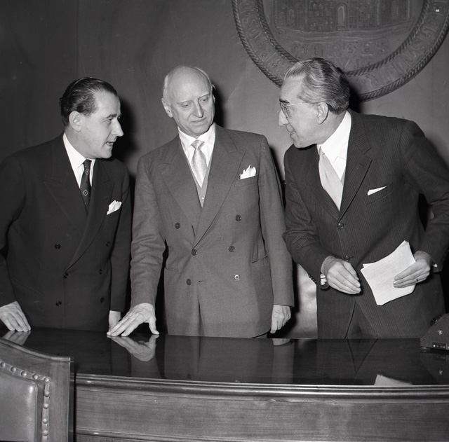 Orchestra della Scala : V. de Sabata : arrivo, ricevimento municipio, concerto