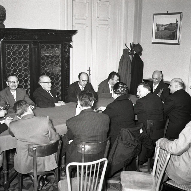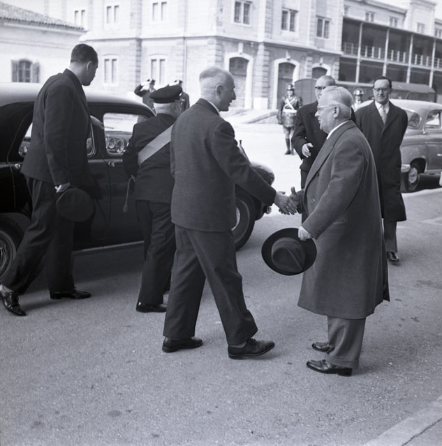 Il ministro della Marina Mercantile con la moglie, l'onorevole Maria De Unterrichter si reca a Trieste e visita il porto, il Municipio, il vescovado con mons. Santin, il Circolo della Cultura e delle Arti