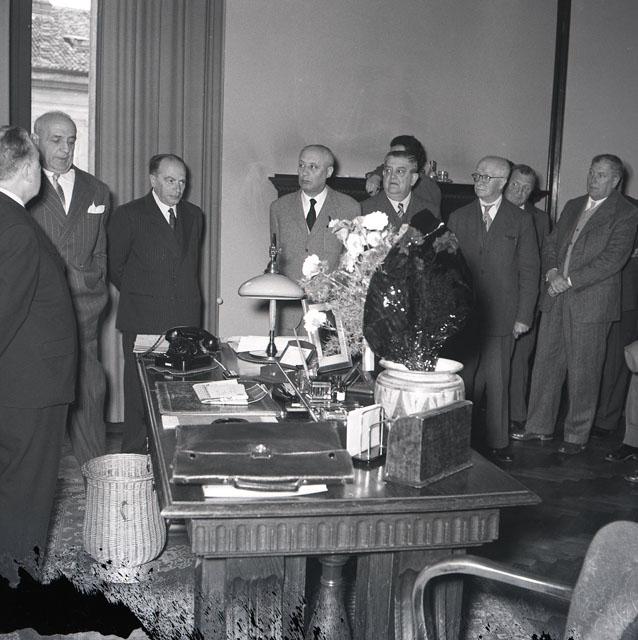 Il 1° presidente della Corte d'appello prof. Luigi De Litala ha preso congedo ieri dalla Magistratura, dovendo raggiungere la nuova sede di Torino. Nell'occasione gli è stata offerta una medaglia ricordo in oro. (da: "Il Corriere di Trieste", 11 maggio 1954)