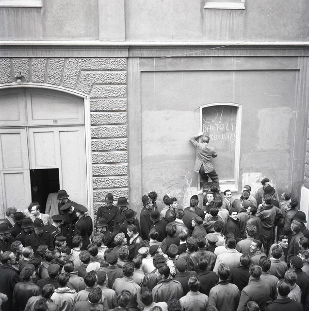 I disoccupati chiedono di essere riassorbiti nelle attività dei lavori pubblici e della Selad. Il Sindaco ottiene la promessa di un parziale riassorbimento e la somministrazione gratuita di oltre un migliaio di pasti al giorno nella mensa comunale di via Gambini. (Il Piccolo, 22.11.1953)