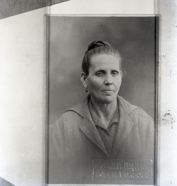 Riproduzione di una foto col ritratto di una donna. In basso si distingue un timbro a secco con la scritta: Fotografia Daguerre, Trieste Corso 39