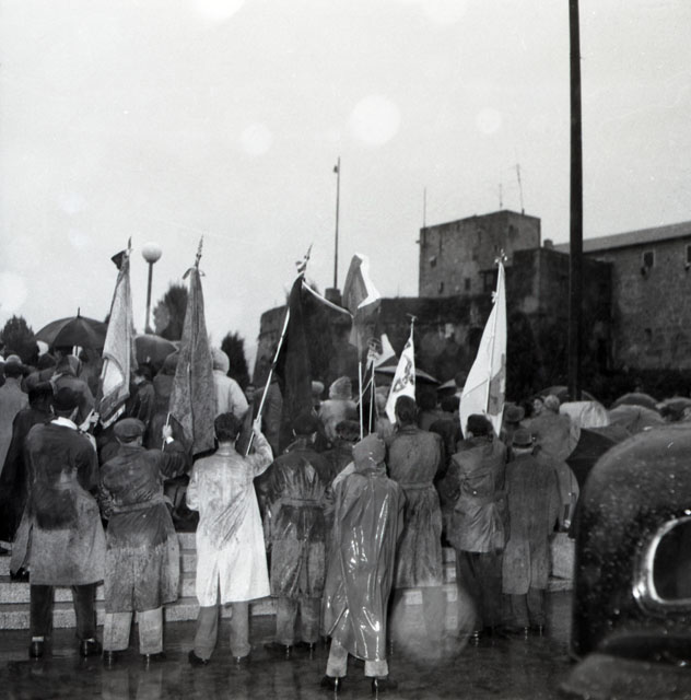 Cerimonia a San Giusto. Durante la notte, la gente accoglie l'autocolonna dei militari italiani nei pressi di Duino con abbracci e strette di mano.