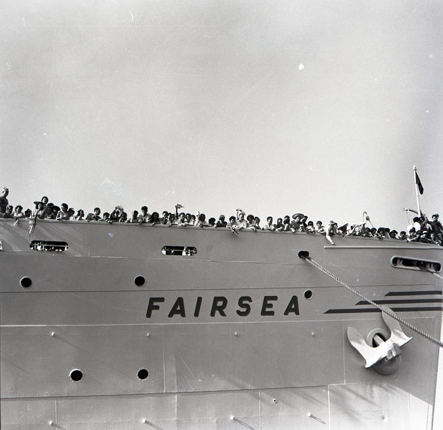 La motonave Fairsea, della Alvion Steamship Corporation di Panama, salpa per l'Australia con piu' di mille e quattrocento emigranti a bordo.