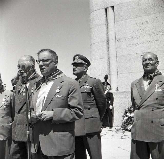 In occasione del Convegno degli artiglieri triveneti si celebra una Messa nella cattedrale di San Giusto. Il generale di corpo d'armata Zatti e il comandante del 21. gruppo d'artiglieria di stanza a Trieste, colonnello Varino, rendono omaggio ai caduti