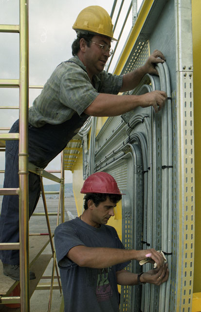 Molo VII, gru posa in opera, operai, lavoro, ferrovia, treno, container.