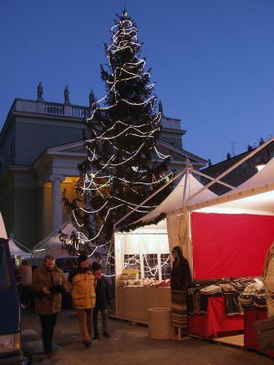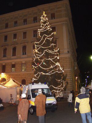 Mercatino di Natale denominato : Un'ambulanza per Natale : solidarieta' europea dei mercatini di Natale , inaugurato in piazza Sant'Antonio Nuovo : Trieste : 2002