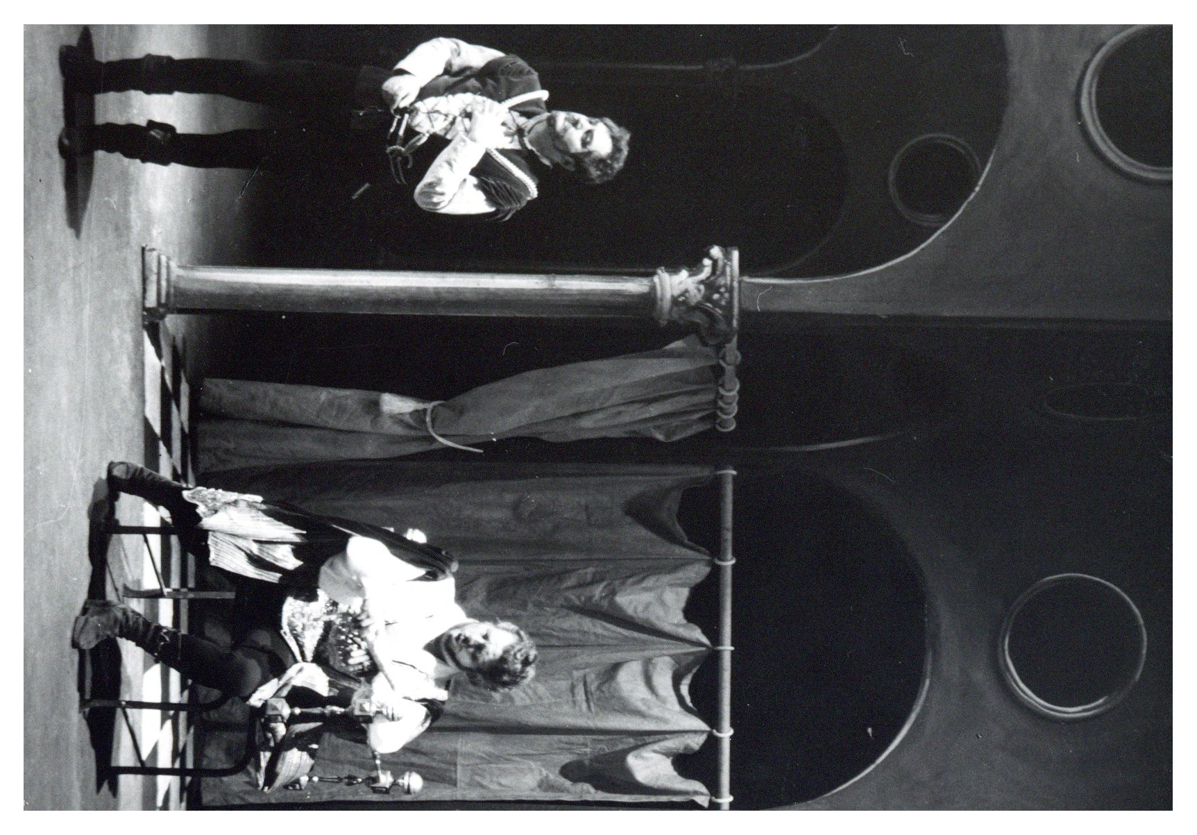 Otello, atto II, Ermanno Lorenzi tenore nel ruolo di Cassio, Giulio Fioravanti baritono nel ruolo di Jago. Teatro Verdi, Trieste, 1967
