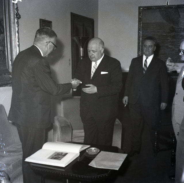 Il Borgomastro olandese H. Pop di Dinterloond en Prinseland, ospite con moglie e figli a Trieste, ha consegnato, a nome del consiglio comunale della sua città, al Sindaco Franzil una medaglia d'oro e la cittadinanza onoraria della città olandese per l'aiuto offerto da Trieste all'Olanda durante l'alluvione del febbraio 1953. Piccolo sera 30.07.1960