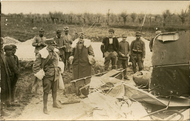 Aeroplano austriaco Albatros Kampflug abbattuto. Da un'attenta analisi si evince che non si tratta del generale Cadorna ma di un alto ufficiale di artiglieria (il berretto è privo dei gradi tipici del generale: aquila e due strisce).