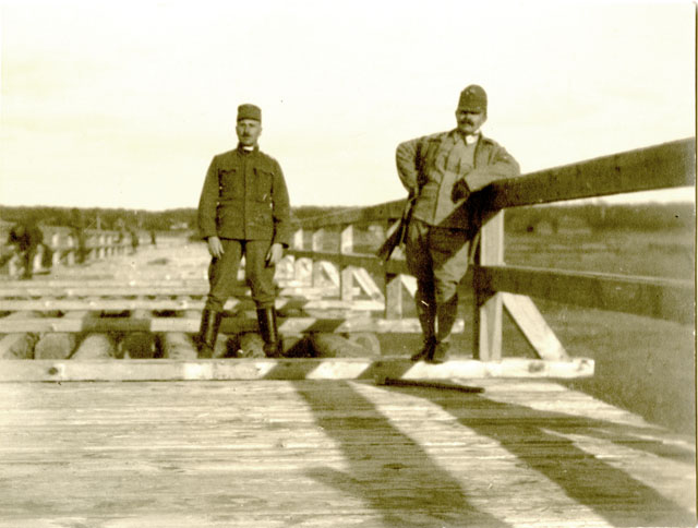 Il capitano Chiachich e il maggiore Müller sul ponte costruito dallo squadrone tecnico