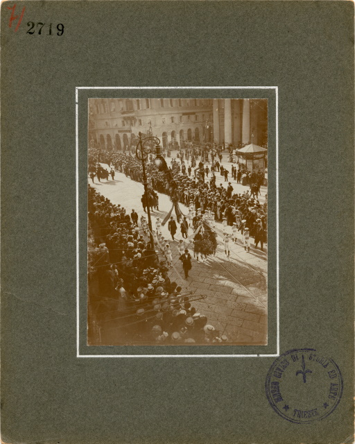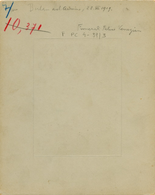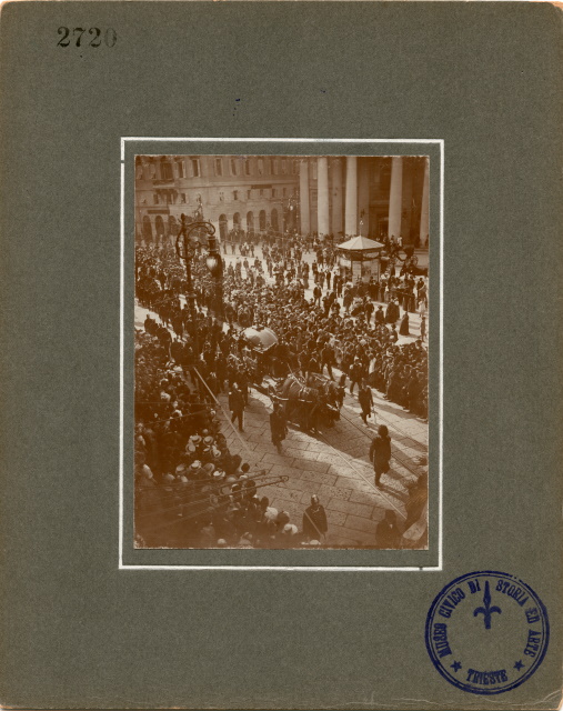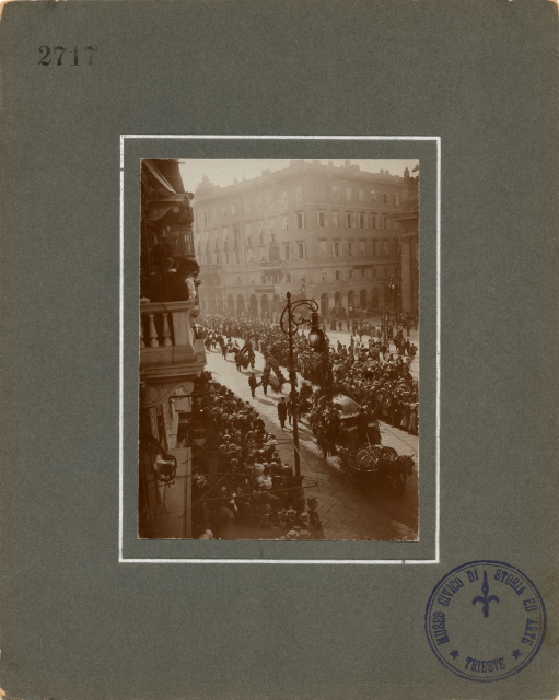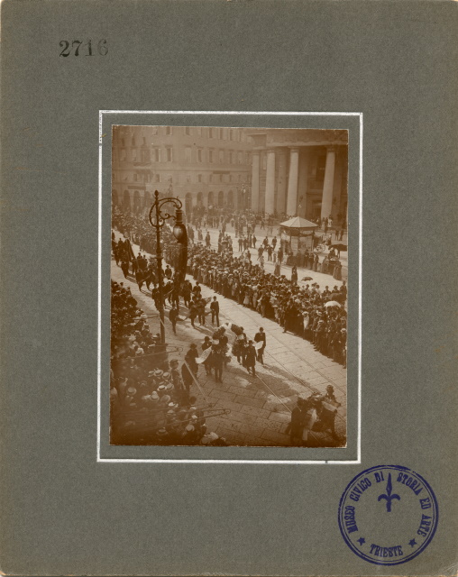 Felice Venezian, avvocato, esponente di rilievo della massoneria, svolge il ruolo di capo carismatico indiscusso del movimento liberalnazionale per un ventennio, riuscendo a tenere unite le diverse anime della comunità italiana sotto una guida conservatrice ed intransigente, capace però di tenere a freno gli esponenti più radicali. La sua prematura scomparsa lascia un pesante vuoto nel movimento. Si presume che le foto siano state fatte da Benque dalla posizione dello studio fotografico con le finestre che guardano proprio sulla Piazza della Borsa, il punto di riferimento il balcone e il lampione.