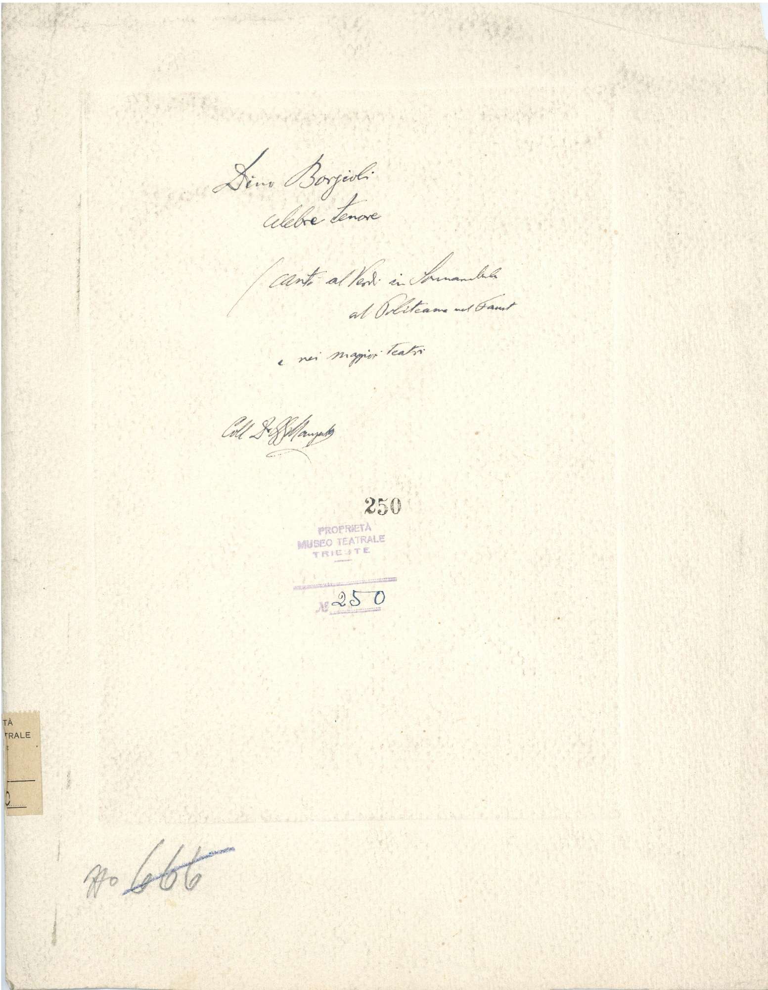Proprietà Ente pubblico territoriale; Civico museo teatrale C. Schmidl; donazione; Manzutto, Gian Giacomo