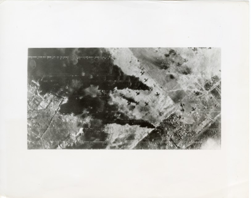 Veduta aerea del bombardamento americano alla base aerea di Iwo Jima.