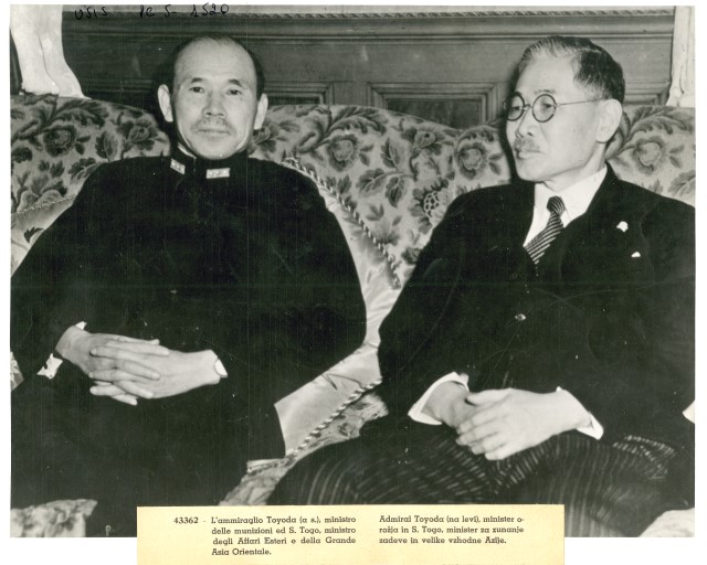 Japanese Admiral Teijiro Toyoda (left), Minister of Munitions, former foreign Minister and President of the Japan Iron Works, and Shigenori Togo, foreign Minister and Minister of Greater East