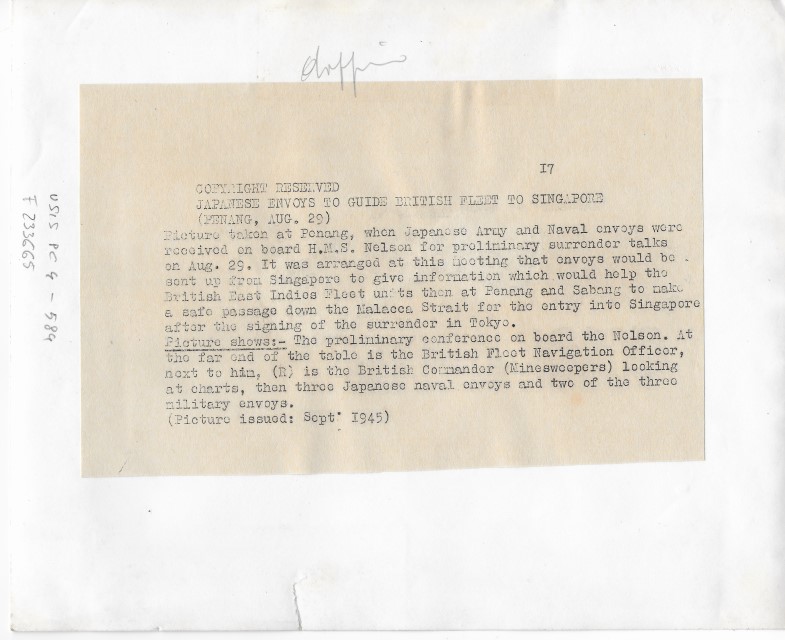 Conferenza preliminare con i delegati giapponesi per il passaggio di Malacca e Singapore agli alleati