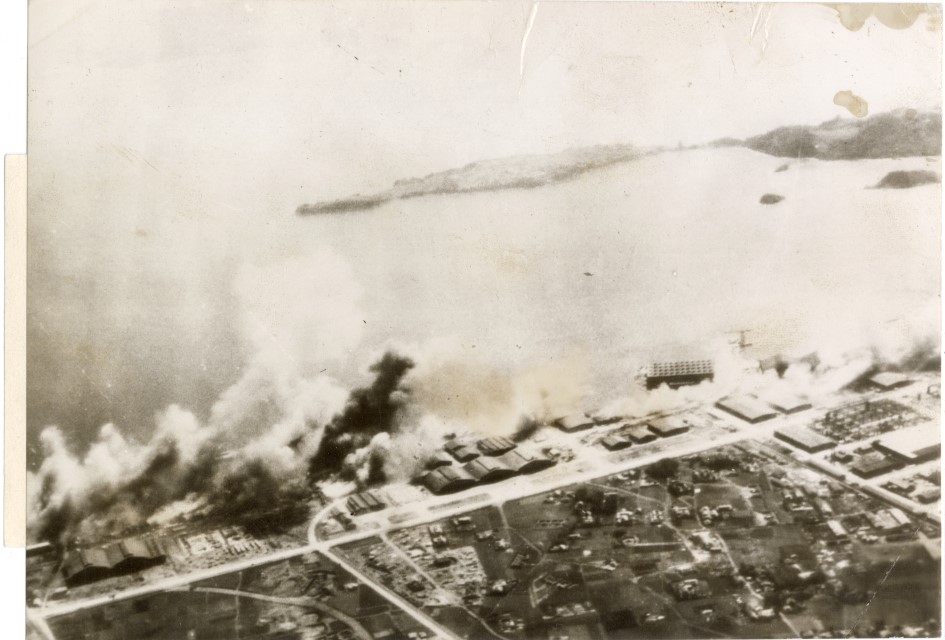 Incendio delle basi aeree giapponesi a seguito dei bombardamenti americani sulla città di Omura.