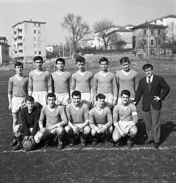 squadre calcio minore (campo ILVA) e spettatore teddy-boy