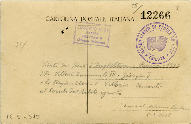 I Re Vittorio Emanuele III e Giorgio V e le Regine Elena e Vittoria davanti al loculo del Milite Ignoto durante la visita dei Reali di Inghilterra nel maggio del 1923 a Roma.