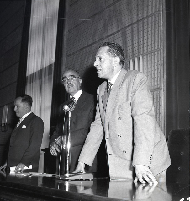 37. Congresso della Societa italiana di fisica nell'Aula Magna dell'Universita di Trieste. Presenti all' inaugurazione il conte di Carrobbio, capo della missione italiana; il presidente di Zona, prof. Palutan; il sindaco ing. Bartoli; mons. Gligo in rappresentanza del vescovo; il prof. Rubini, sovraintendente scolastico