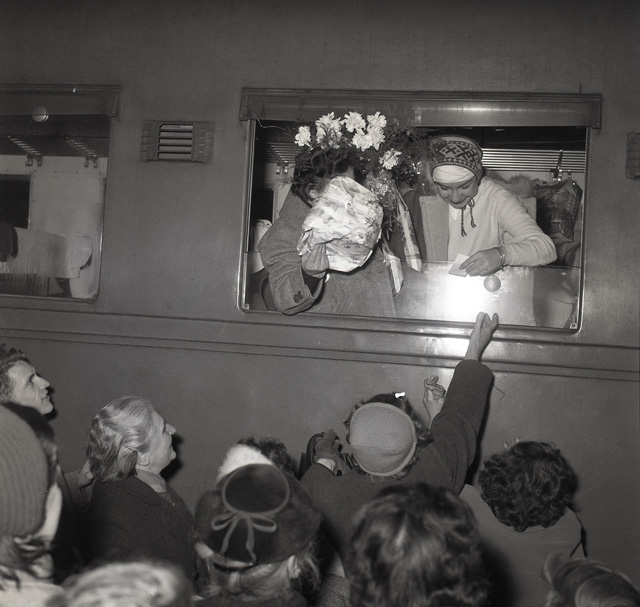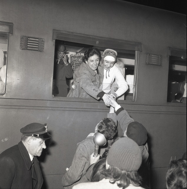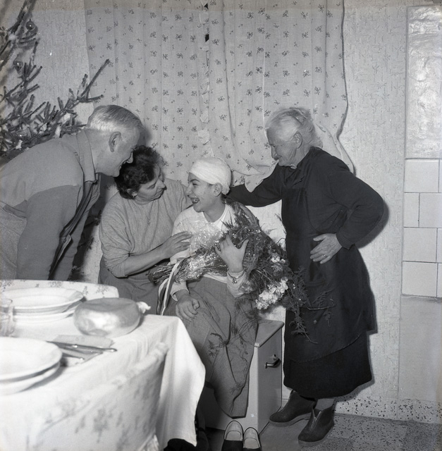La giovane gradiscana Alessandra Fornasiero rientra da un viaggio a Stoccolma dove è stata operata dal professore Herbert Olivecrona. Con una sottoscrizione il Piccolo finanzia l'intervento che viene descritto nelle pagine del giornale. La documentazione fotografica utilizzata dal giornale è di Giornalfoto. Il servizio di Foto Omnia documenta anche il rientro a Gradisca.
