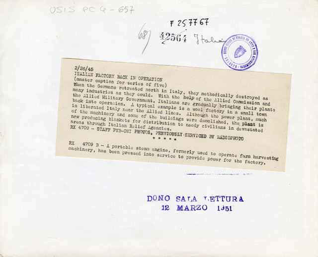 Proprietà Ente pubblico territoriale; Comune di Trieste; donazione; Sala di lettura americana; 1951/03/12