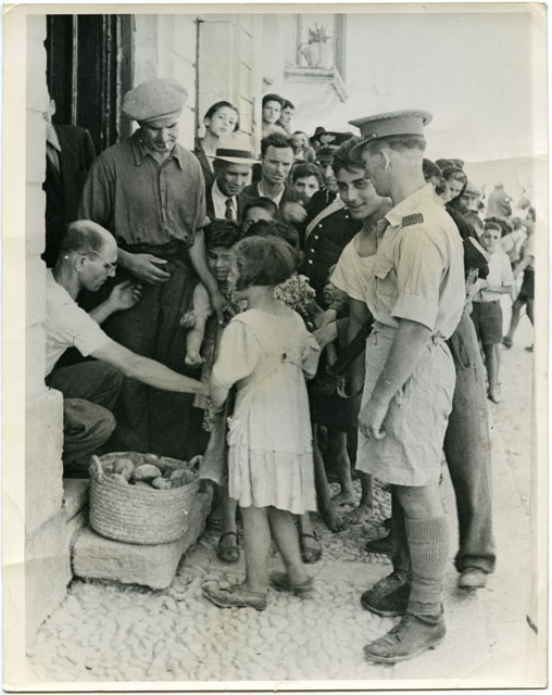 ALLIES AID IN SICILIAN REHABILITATION CIVILIANS IN VIZZINI SICILY, LINE UP FOR THEIR BREAD RATIONS UNDER MILITARY SUPERVISION